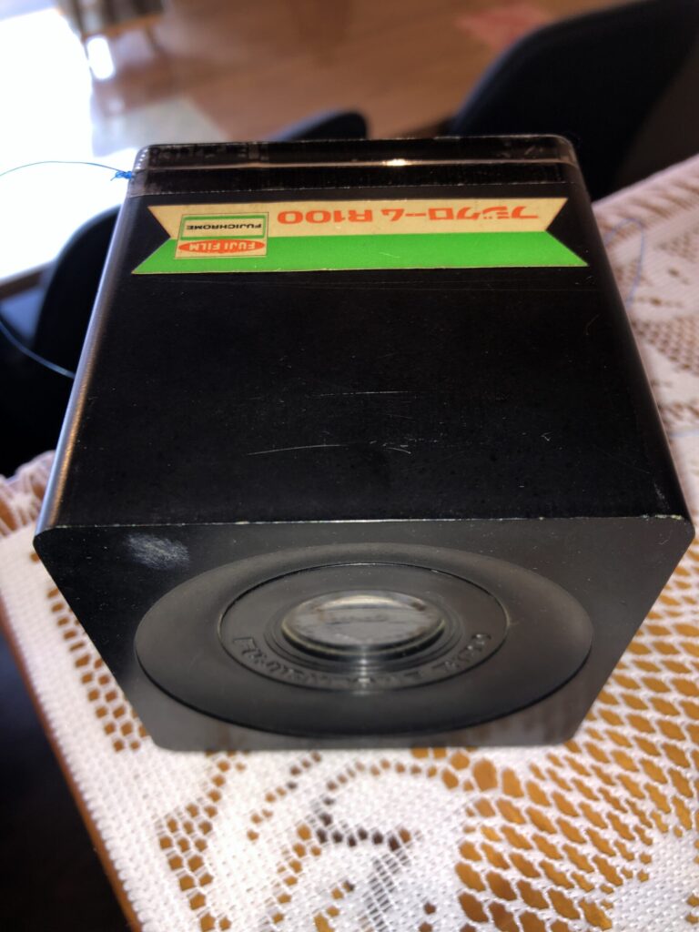 - フジクローム R100は当時人気だった富士フイルムのカラーリバーサルフィルム(スライド用フィルム)の名前です。このフィルムで撮った写真をこのビューアーで見るのが、当時の写真好きの楽しみでした。