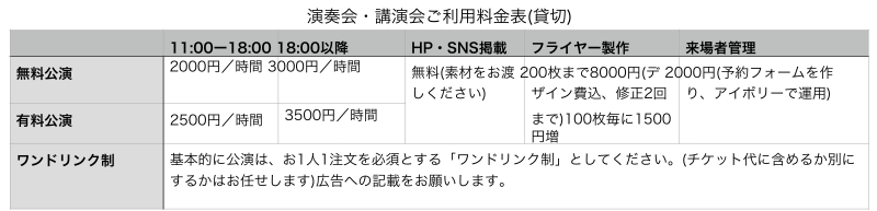 注・無料での演奏会・公演と有料での演奏会・公演では料金が違います。